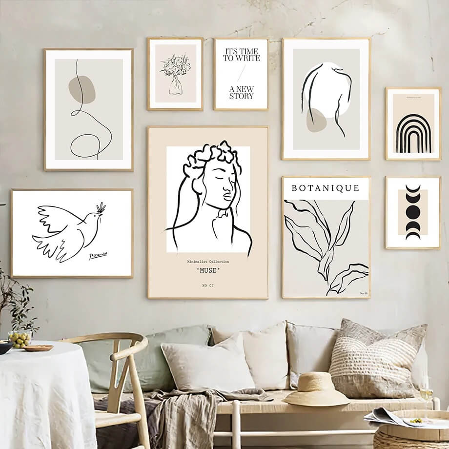 Décorez les murs de votre pièce avec ces affiches murales esthétiques aux contours noirs et blancs. Elles s'harmoniseront parfaitement avec le vert sauge, les pièces minimalistes et bien d'autres styles.