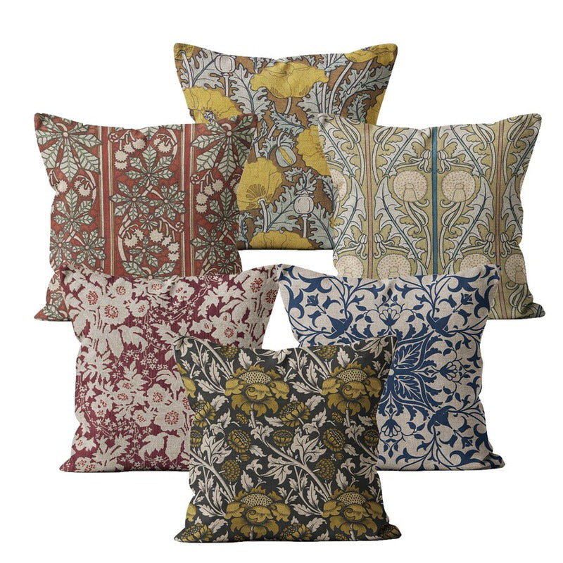 Collection de housses de coussin esthétiques aux motifs floraux rétro. Housse de coussin de couleur pâle, style académique foncé. Parfaite pour une décoration de style académique foncé ou cottagecore.