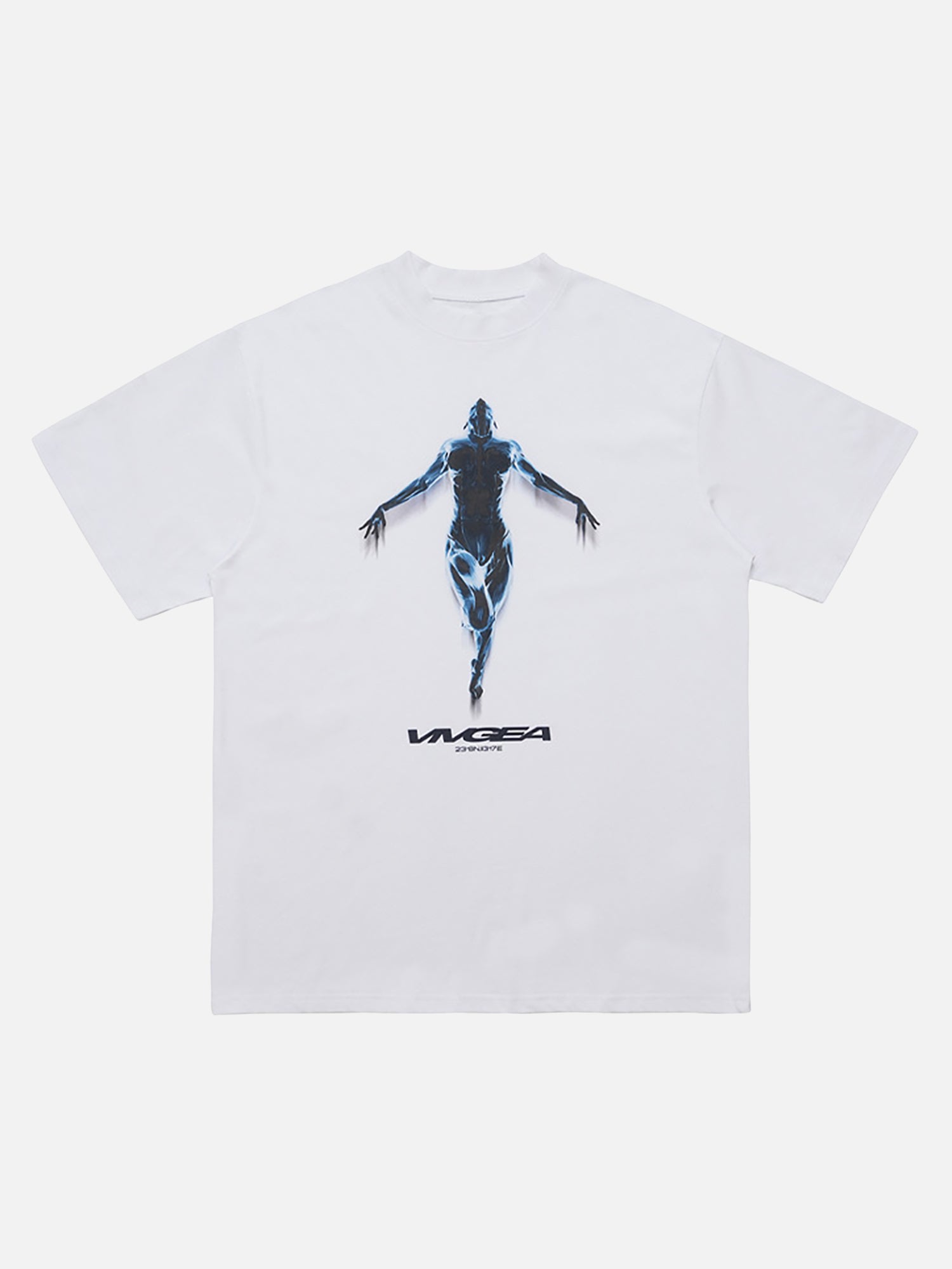 T-shirt ample oversize à silhouette métallique de science-fiction
