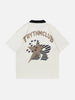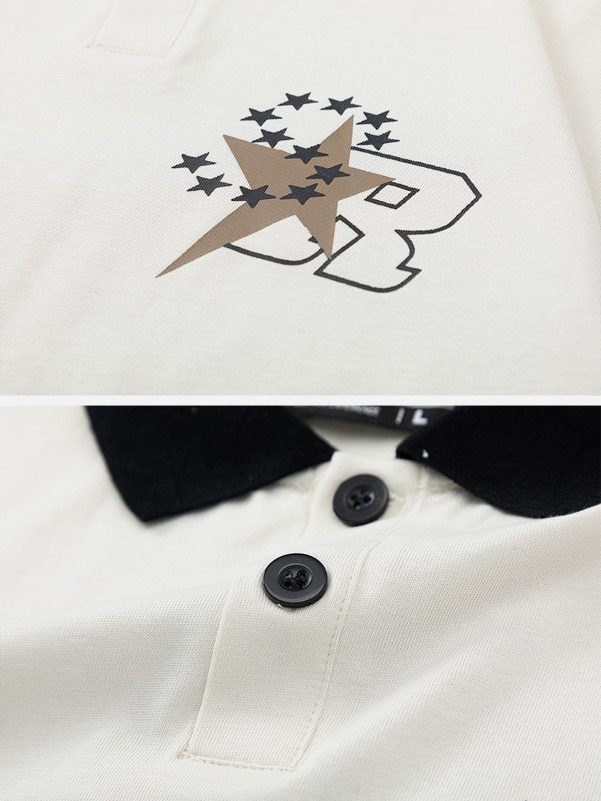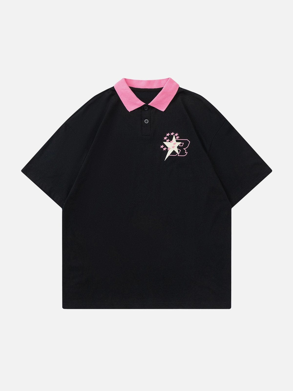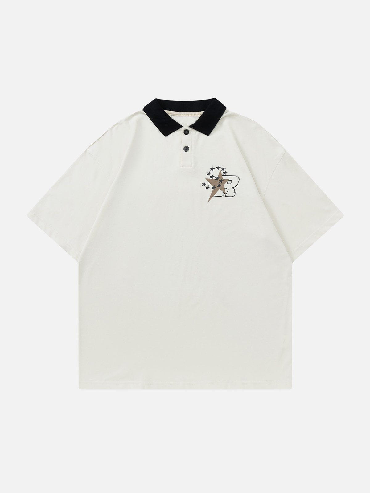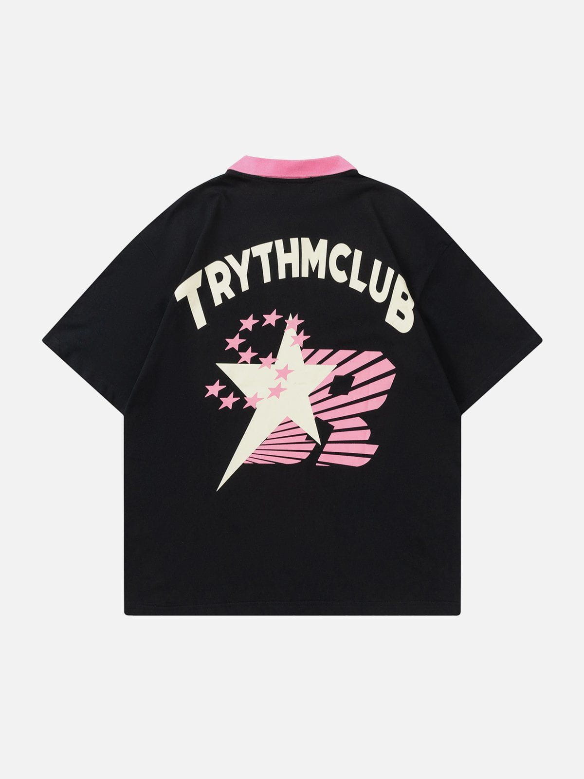 T-shirt à col polo imprimé lettres étoiles