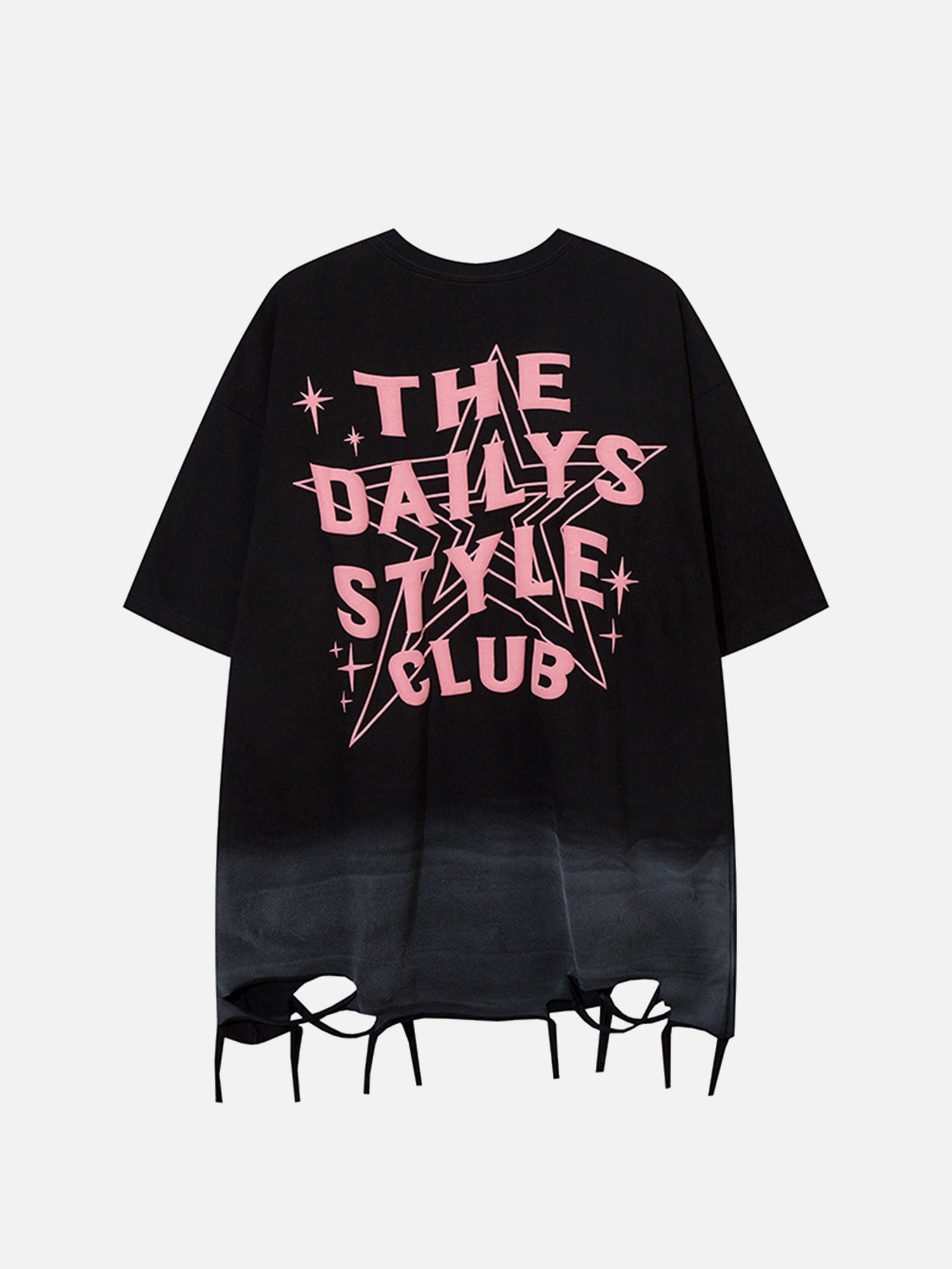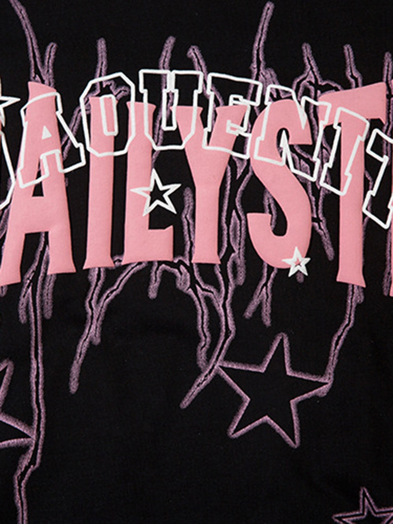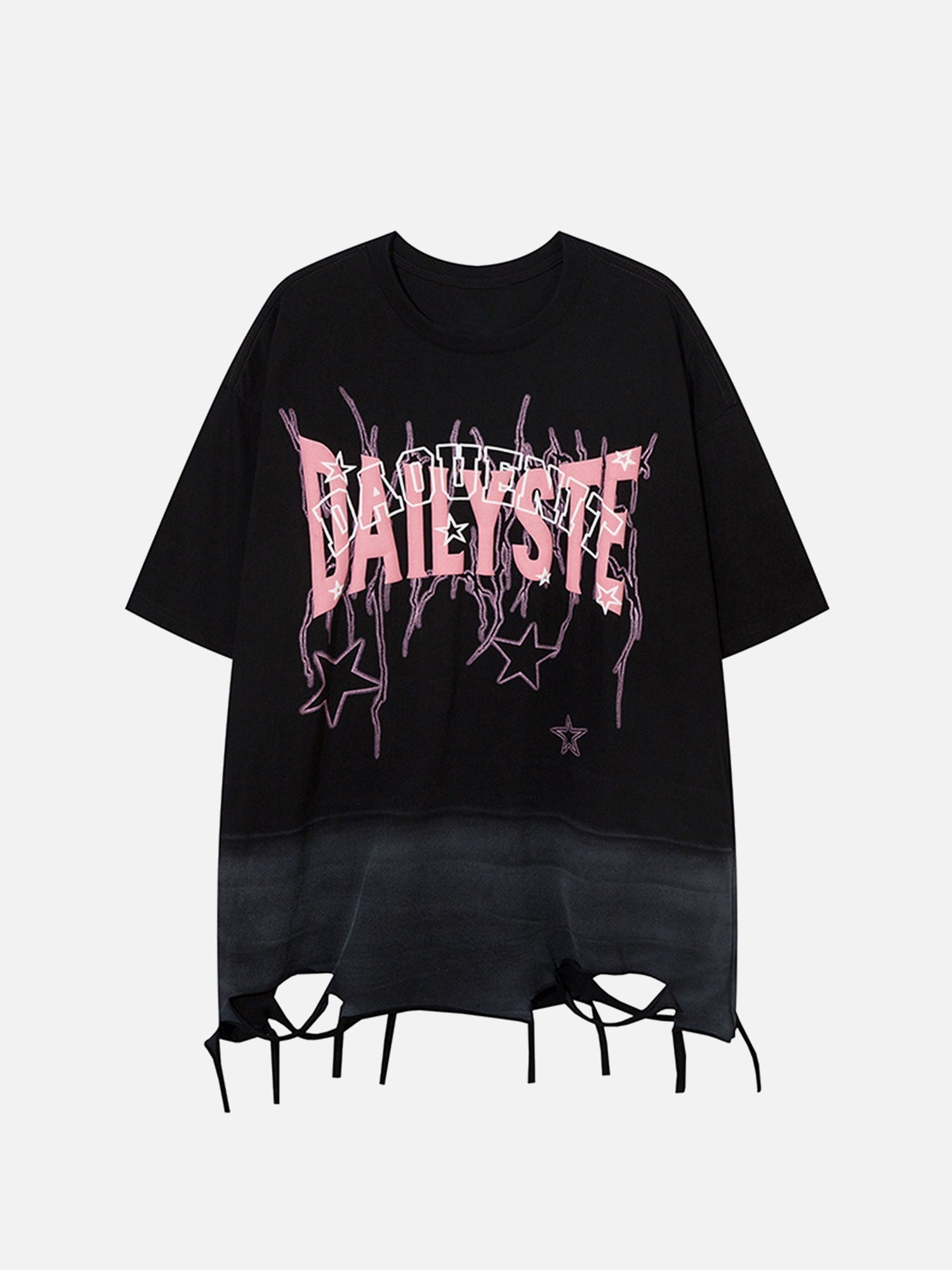 T-shirt Street Hip-hop délavé avec lettres et étoiles