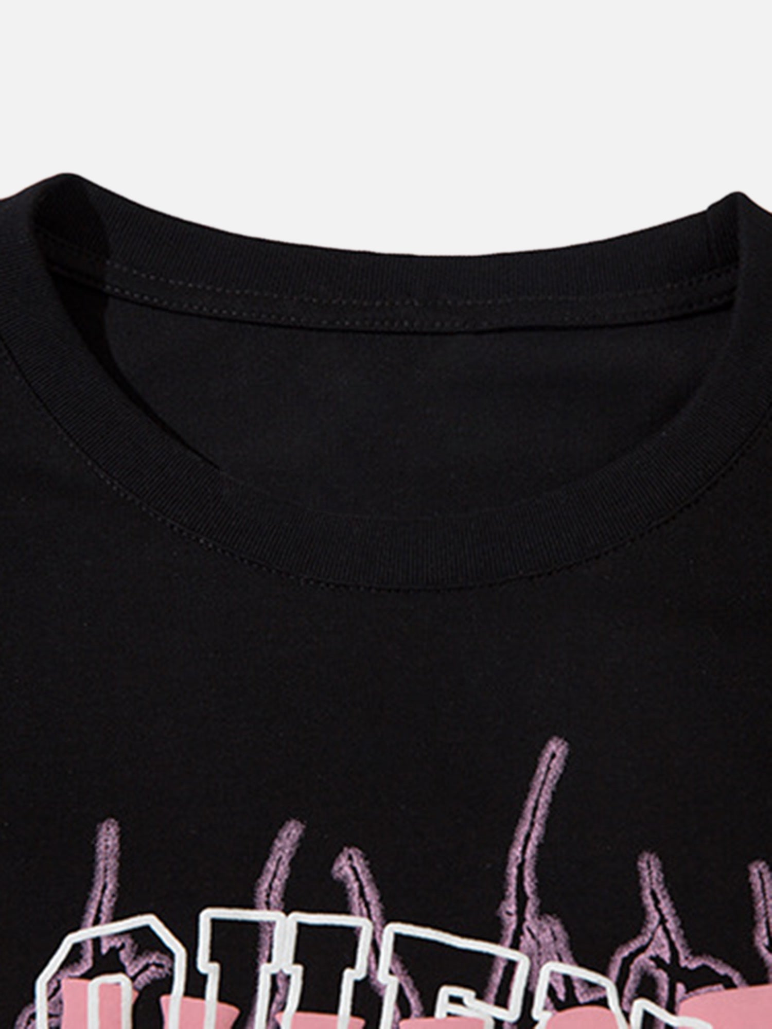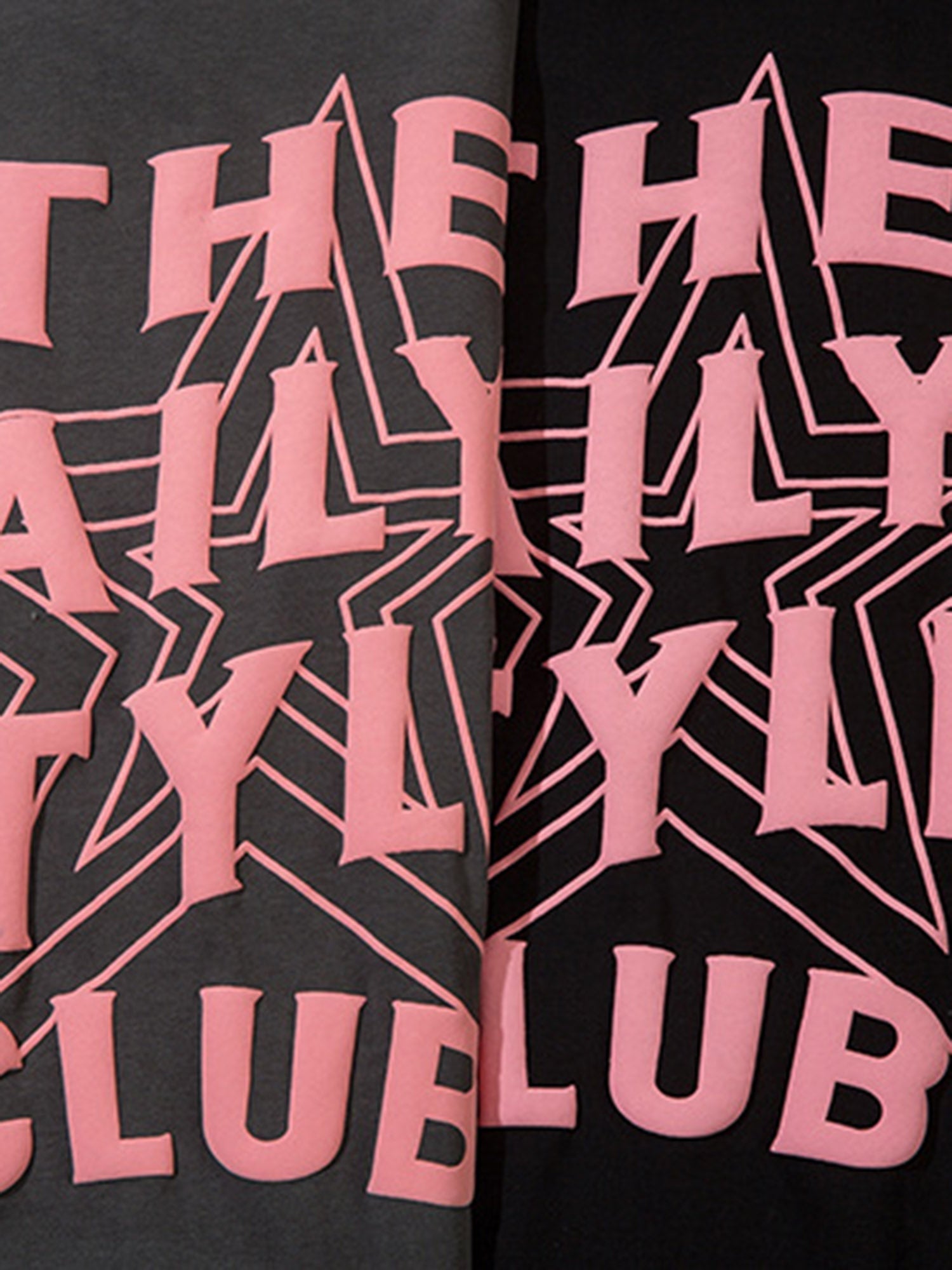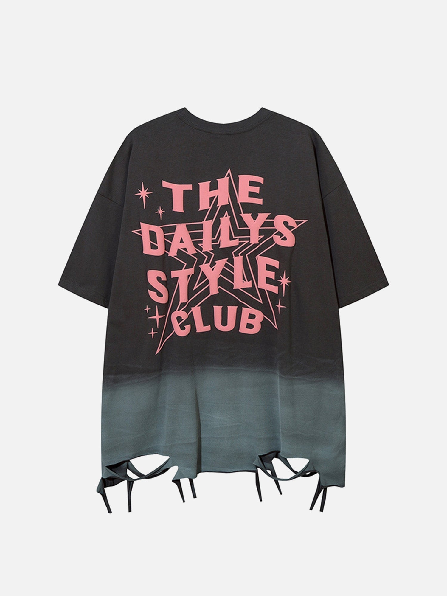 T-shirt Street Hip-hop délavé avec lettres et étoiles