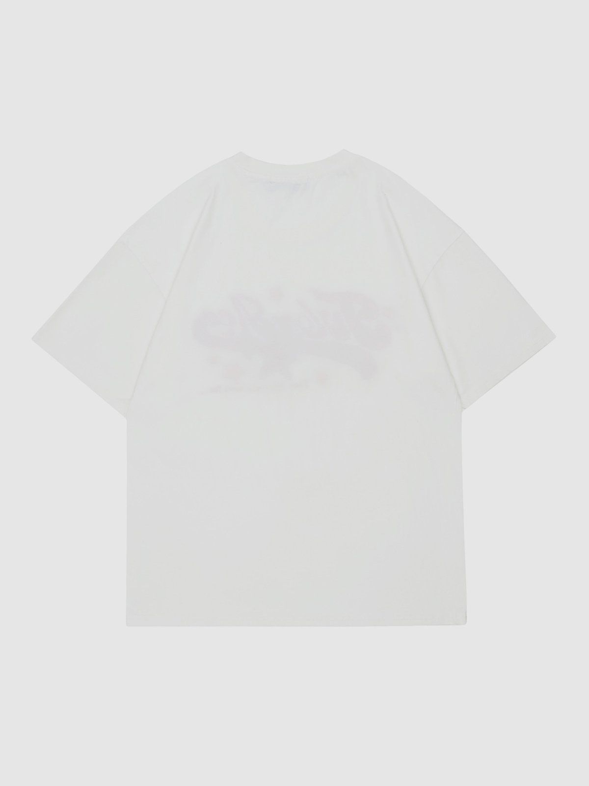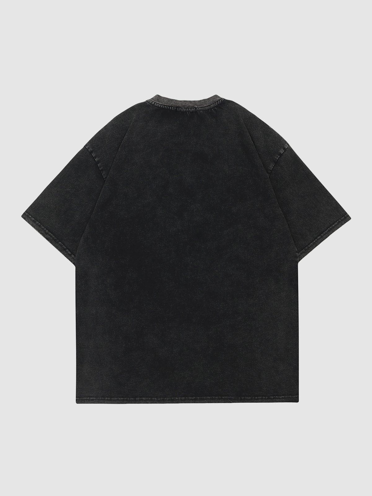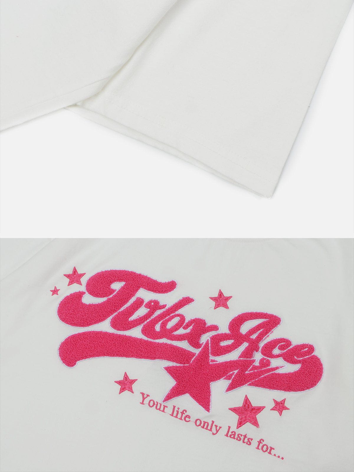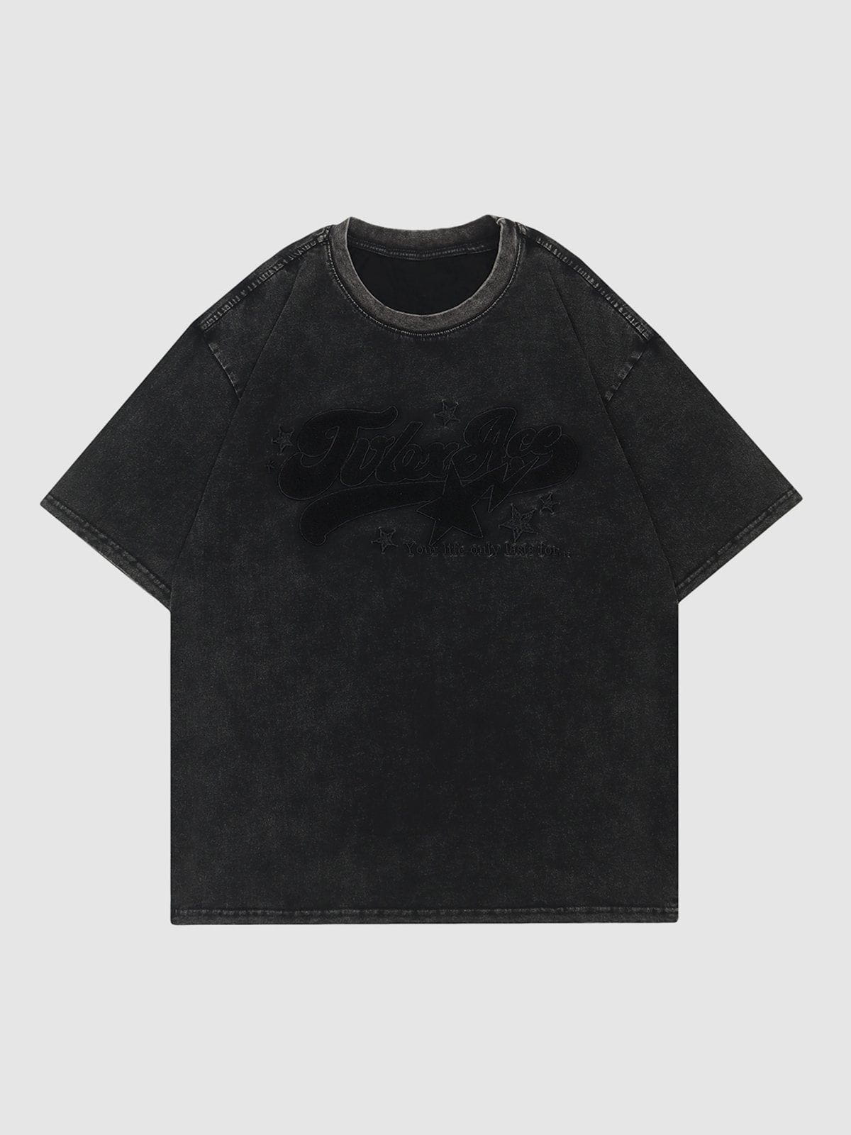 T-shirt imprimé alphabet délavé avec broderie serviette