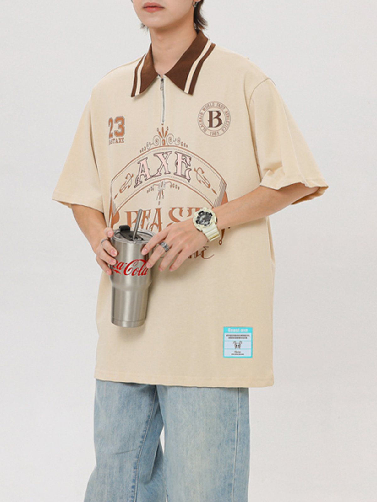 T-shirt à col polo vintage contrasté