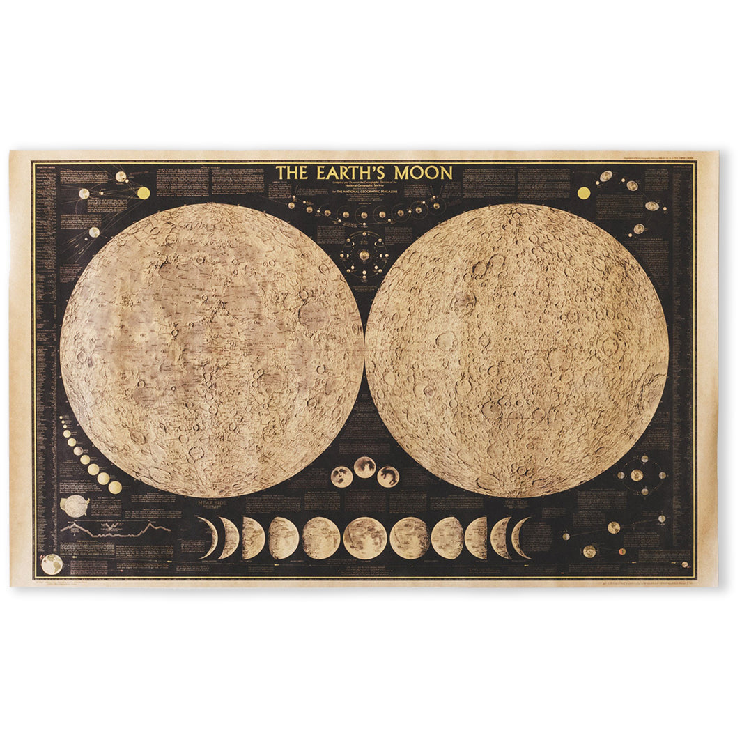 Apportez une touche spatiale à votre pièce avec cette affiche vintage de l'Atlas lunaire. Ce magnifique atlas vintage est transformé en une affiche originale, avec des détails des deux côtés de la Lune. Une décoration murale idéale pour les amateurs de vintage et d'esthétique galactique !