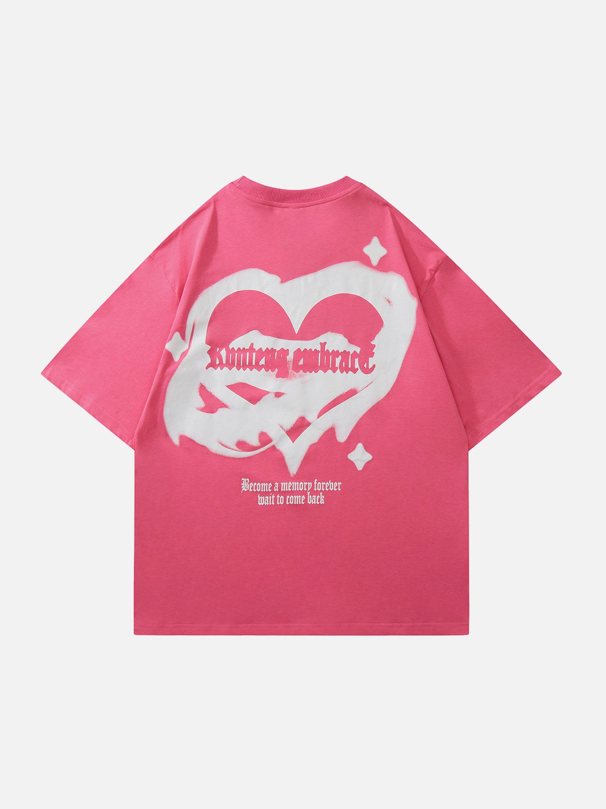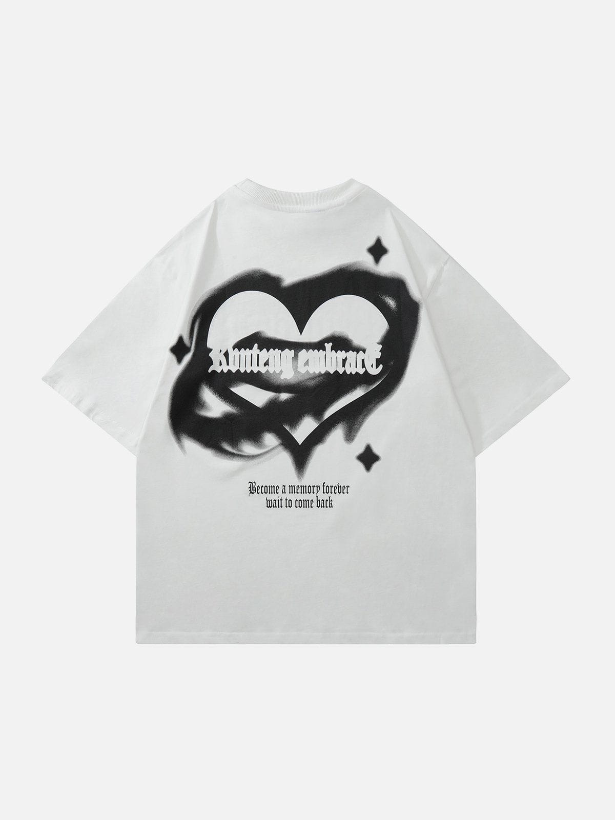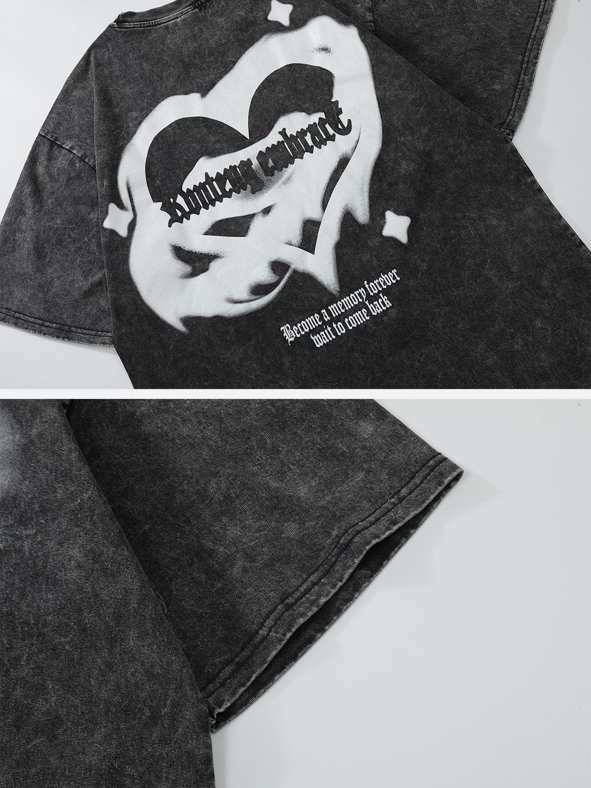 T-shirt vintage délavé à imprimé cœur irrégulier