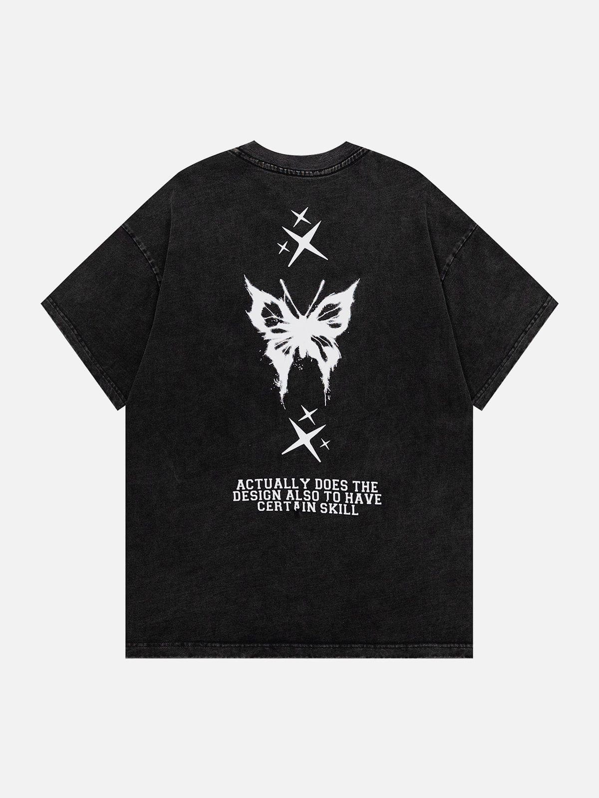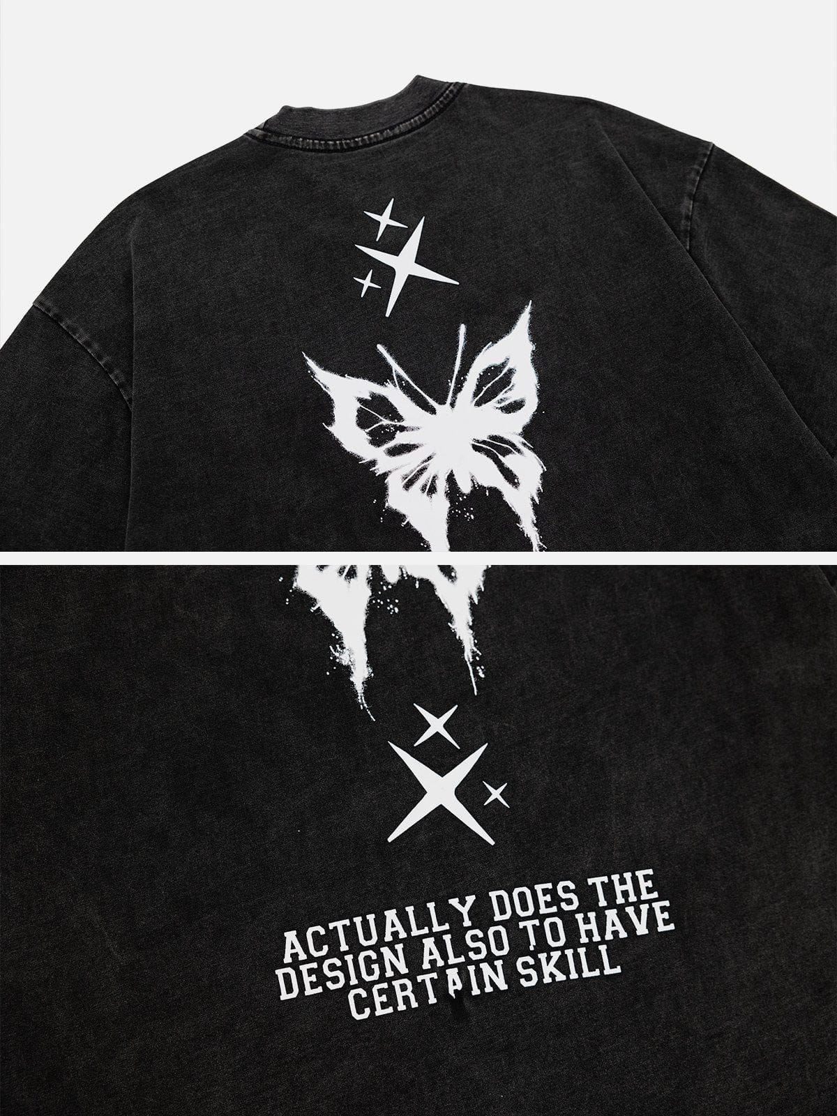 T-shirt délavé à motif papillon ombré