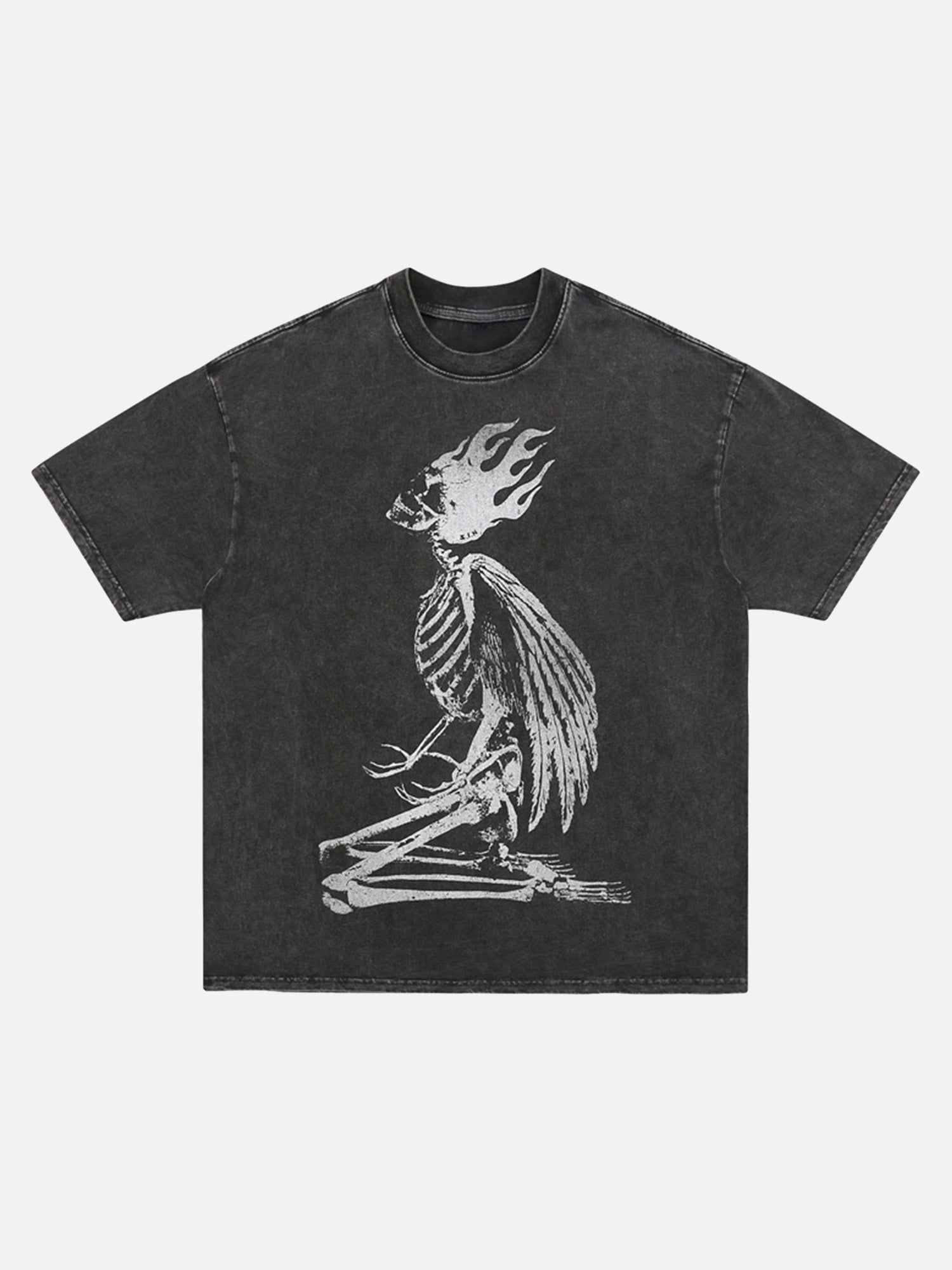 T-shirt ample style hip-hop rétro West Coast avec motif squelette foncé