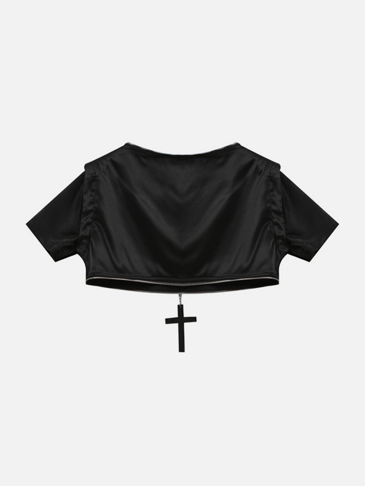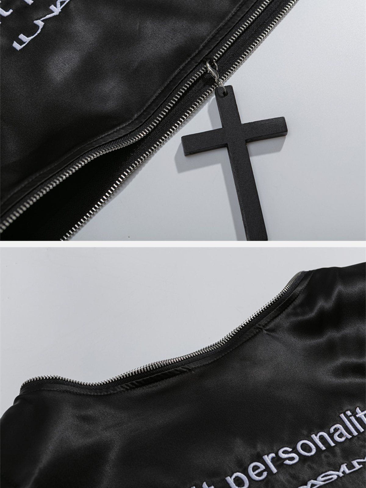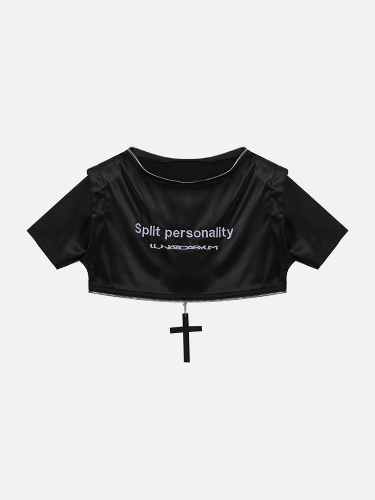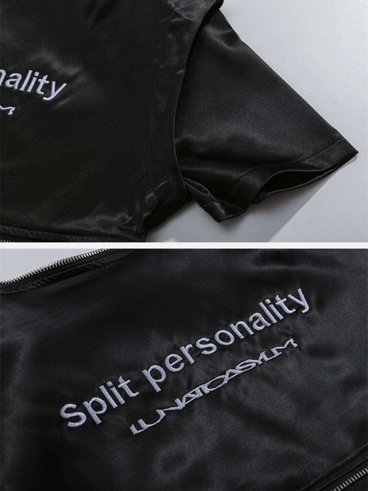 T-shirt zippé à broderie patchwork