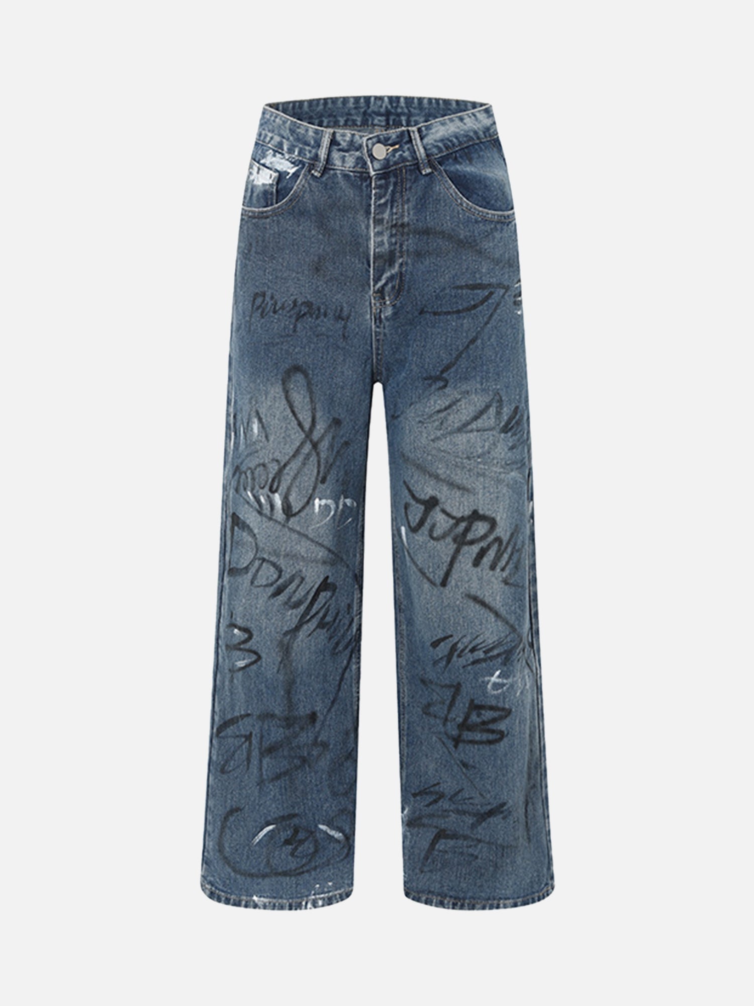 American Street Fashion Fun Graffiti Washed Distressed Jeans