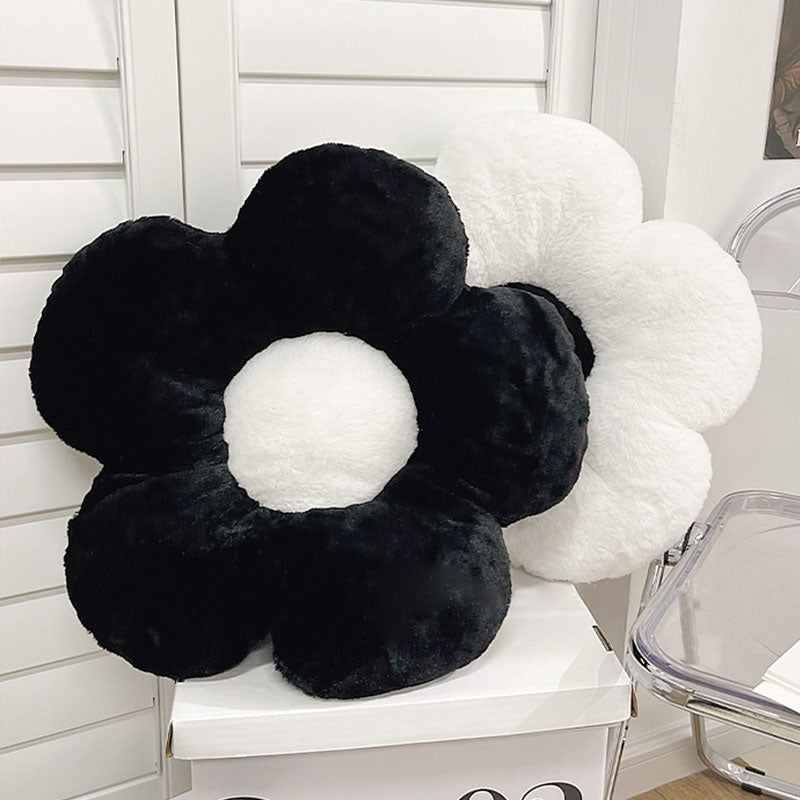 Introducing our beautiful Black and White Flower Pillow - a stunning addition to any aesthetic room. This exquisite cushion boasts a sleek and stylish design. featuring a black and white color palette with a flower shape.