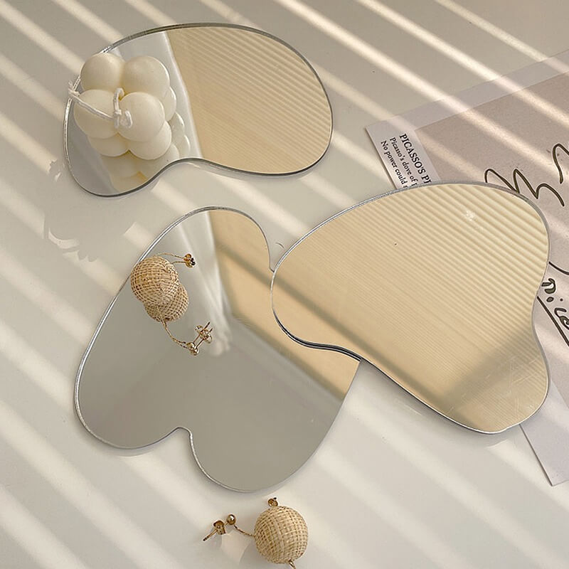 This irregular blob mirror coaster is a stylish way to keep your things on table organised bringing to your room a touch of danish pastel aesthetic.