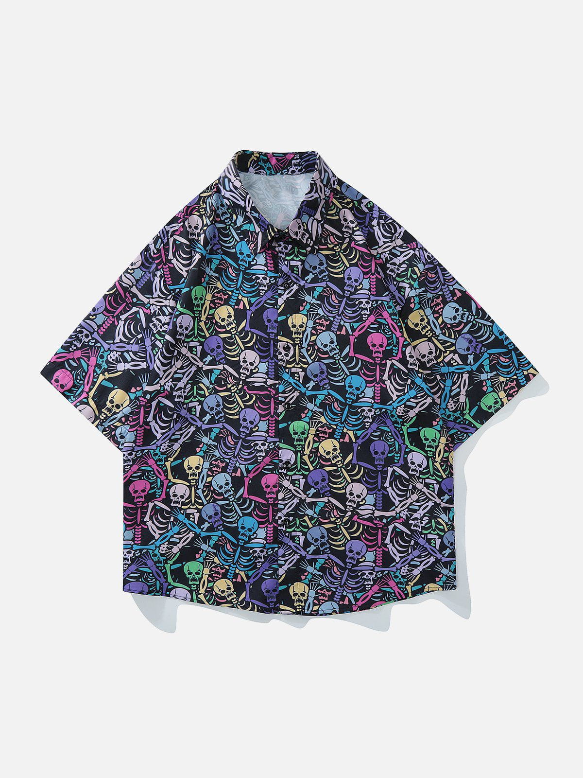 Colour Skeleton Elements Print Short Sleeve Shirts