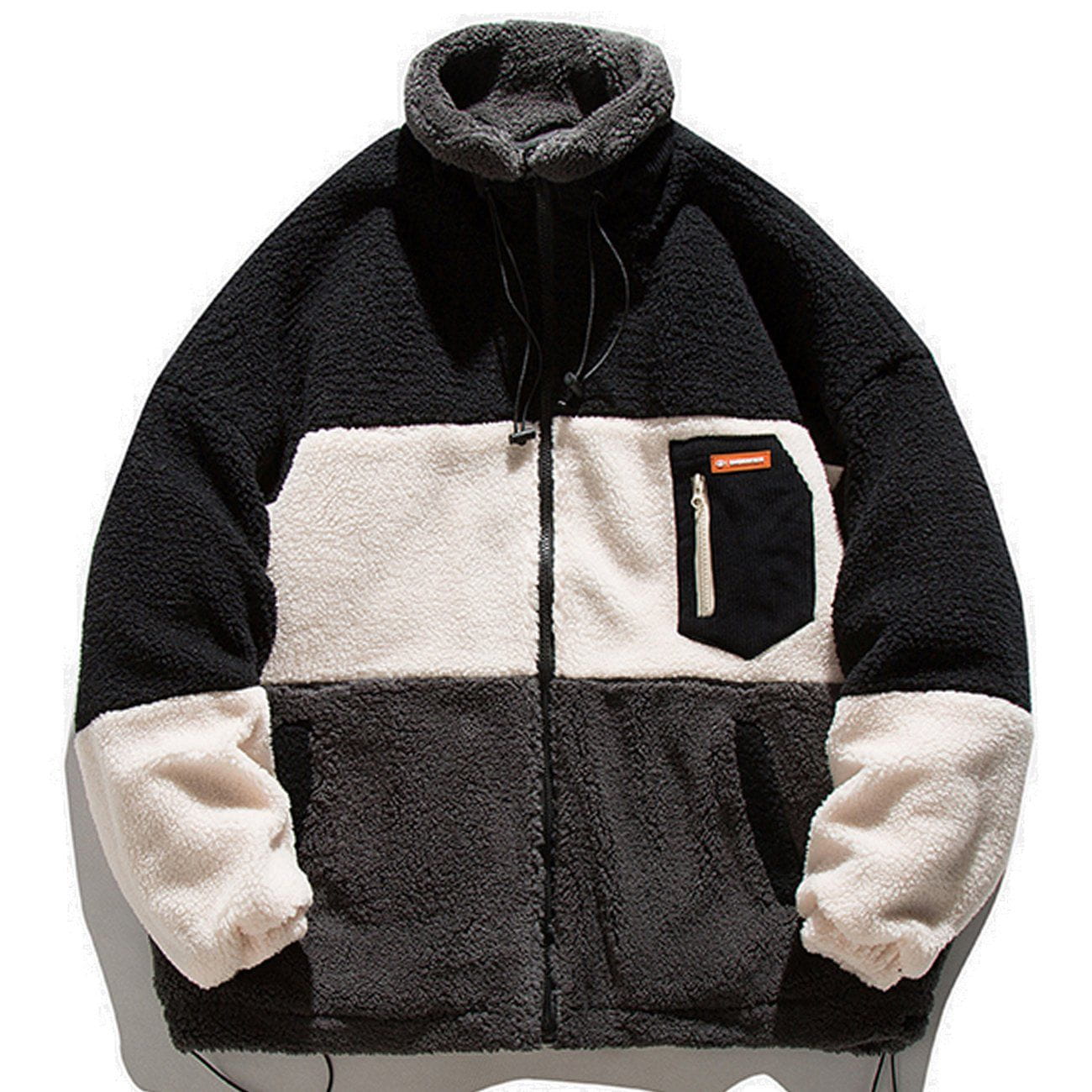 Contrast Stitching Pockets Sherpa Coat