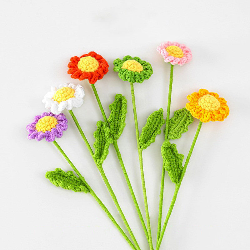 Cute handmade crochet Daisy flowers. Compose beautiful bouquet of artificial flowers with these crochet flowers. Cute decor and must have for danish pastel. kawaii. soft girl and may other aesthetic rooms.