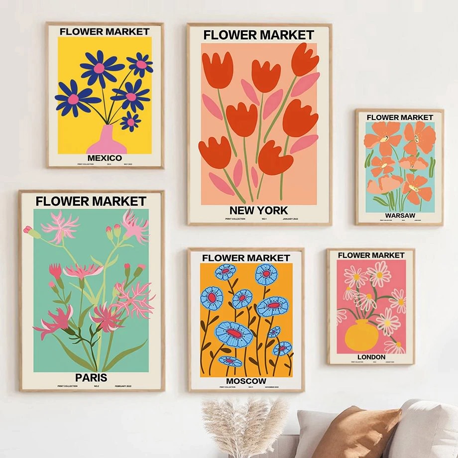 Decorate your bedroom walls with this aesthetic colorful floral styled canvas wall art prints. These gallery wall art posters will perfectly fit danish pastel. vintage and many other aesthetic rooms.