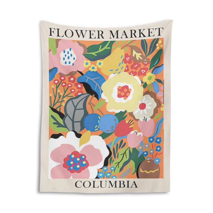 Transform your room into a trendy oasis with our Flower Market Tapestry. Bring life to your walls with this stunning work of art. adding an aesthetic touch to any space. Perfect for creating a cozy living space or bedroom. this tapestry is a must-have for any flower lover. (Flower power for your walls!)