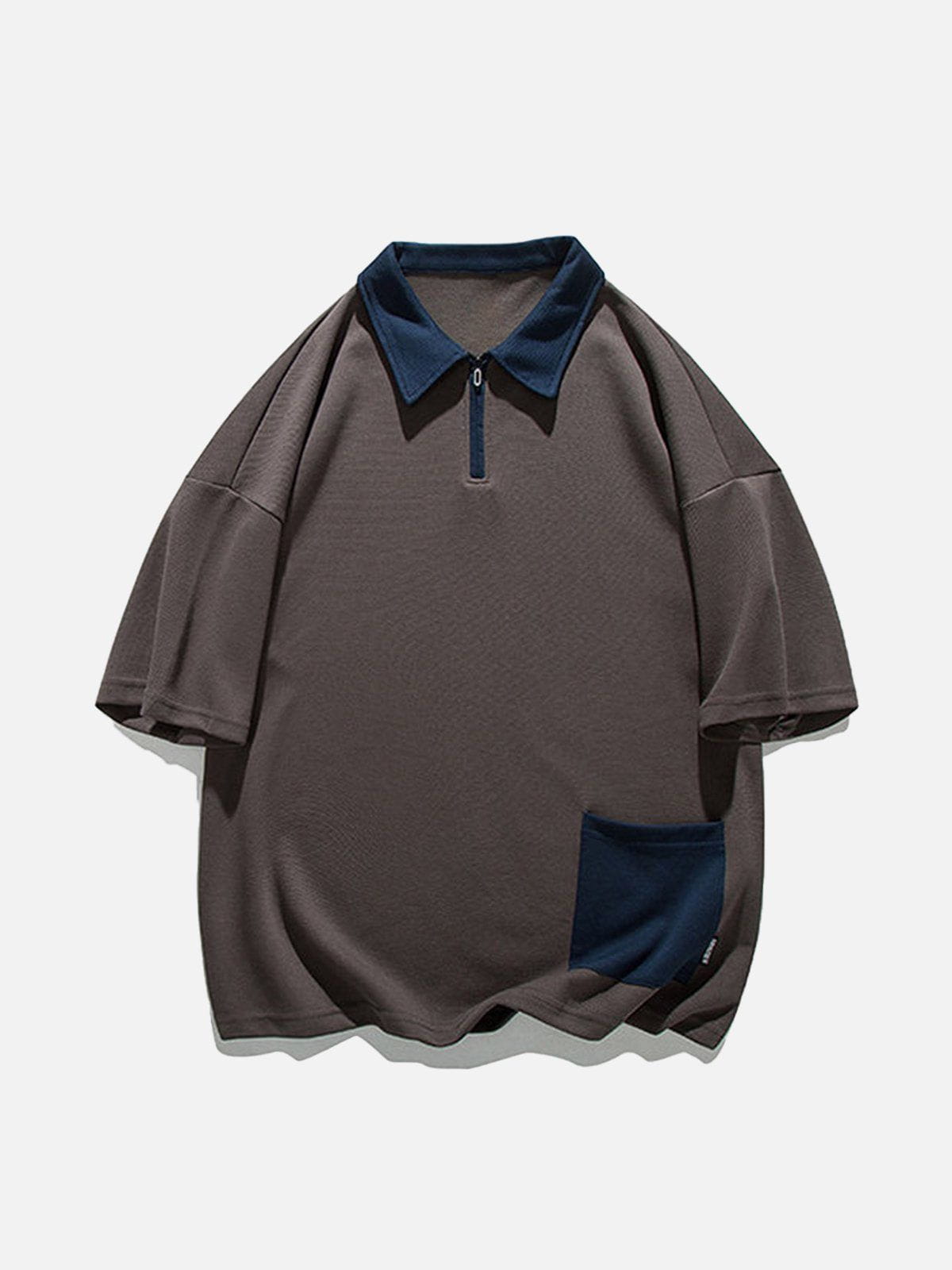 Hem Pocket Zip Up Polo Tee