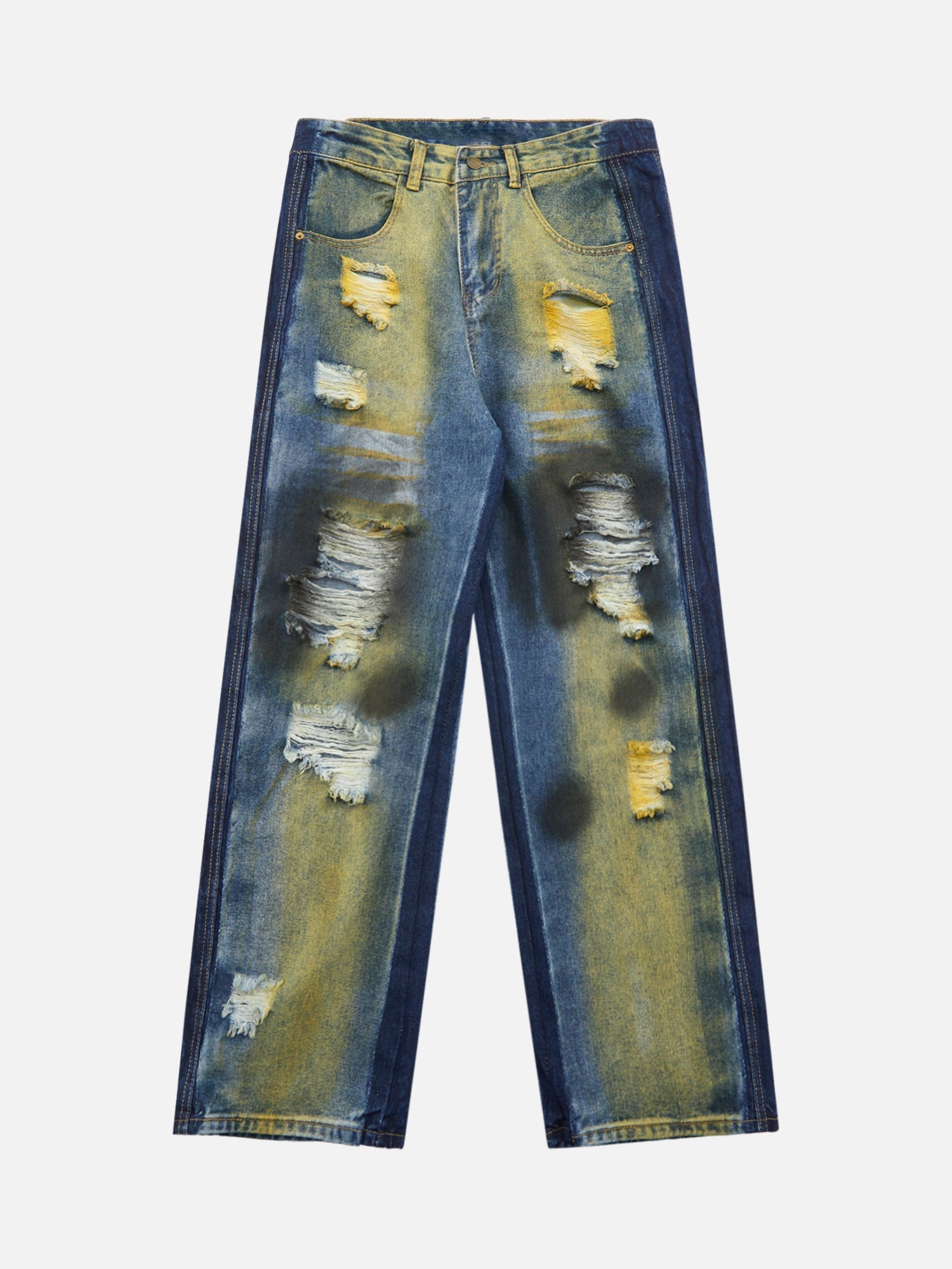 Hip-hop Washed Distressed Loose Spray-dyed Jeans