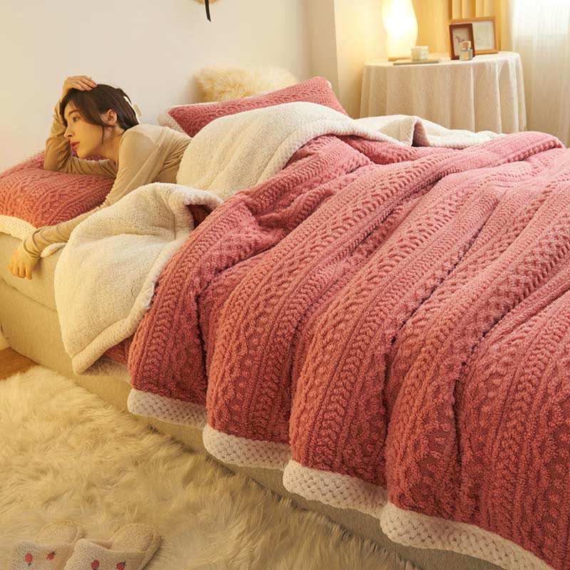 If you are looking for a soft and warm blanket. this kind of blanket can be your good choice. The delicate jacquard patterns give it a special and modern appearance. Made of double-sided fabric. it has different touches and features without shedding or static electricity which can keep you warm on cold nights and easier to sleep. ensuring your sleeping quality. Nice for snuggling up while reading. watching TV. or just relaxing.