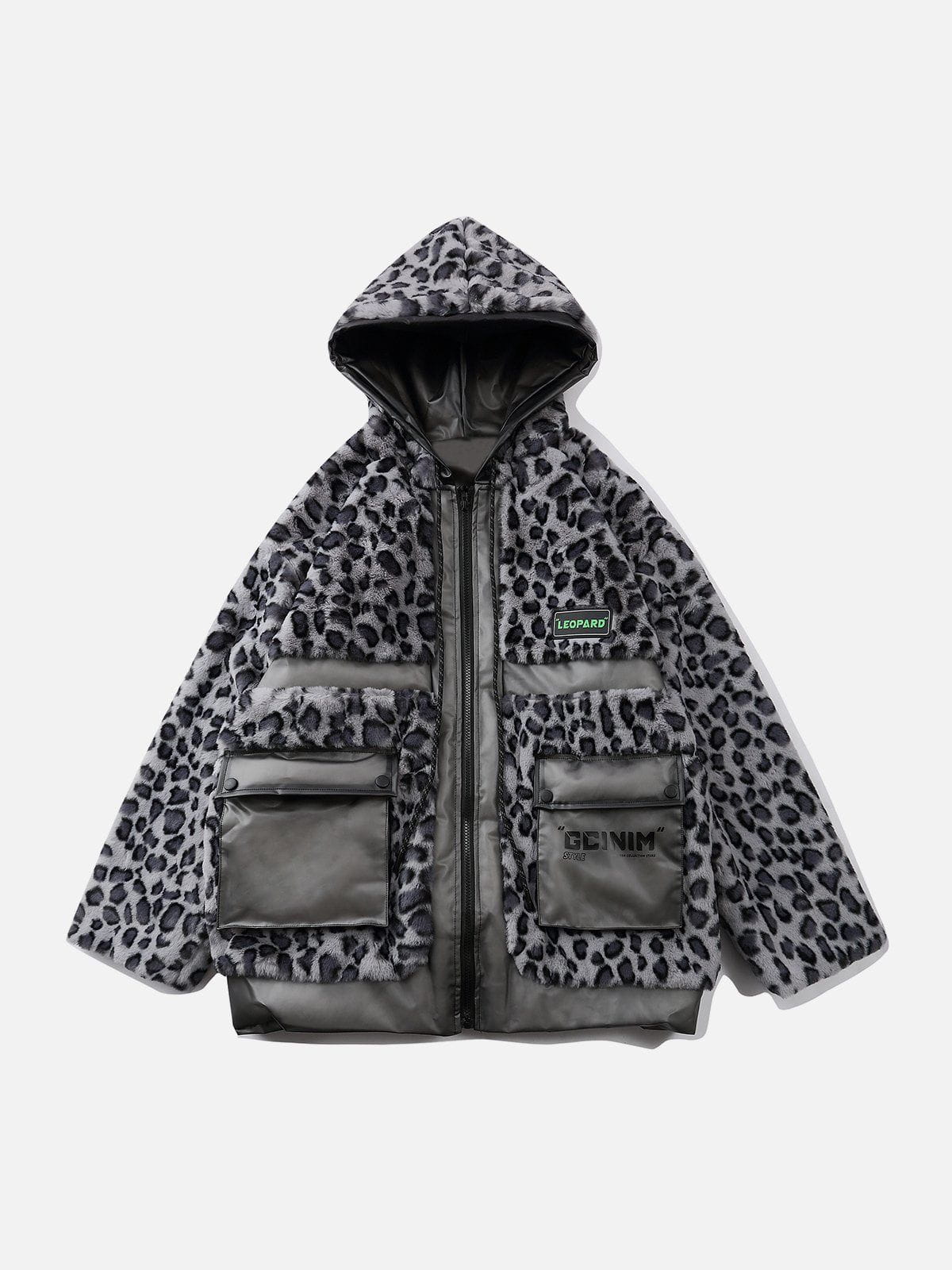 Leopard Plush Stitching Transparent PU Winter Coat