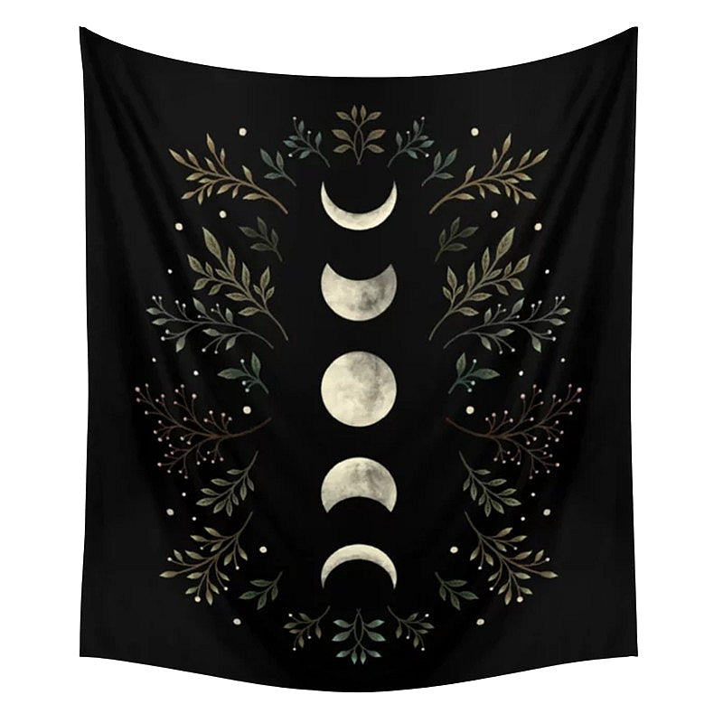 Bring aesthetic look to your room with this unique Moon Phases Tapestry. This beautiful piece if artwork features moon phases on the black color background. Perfect for any grunge. witchcore or vintage aesthetic style lover!