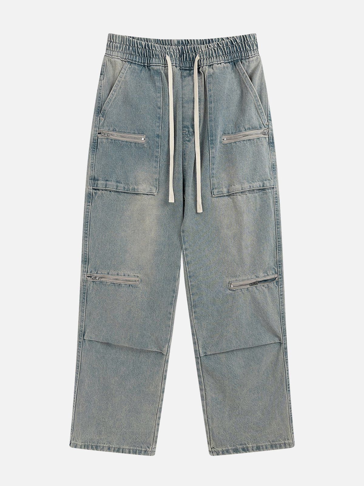 Multi Zip Up Folds Jeans