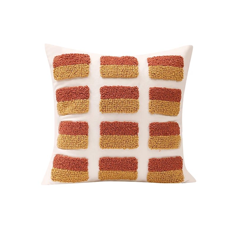 Double color Ochre tufted boho cushion covers. Embroidered geometric print on the top side and soft linen canvas fabric on the bottom with hidden zipper. Perfect for bohemian room aesthetics.