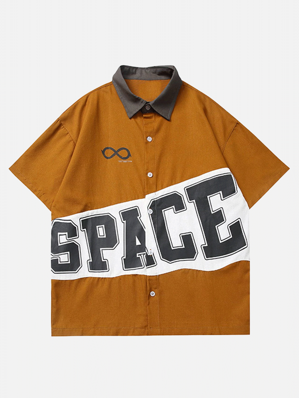 Patchwork Design "SPACE" Short Sleeve Shirt