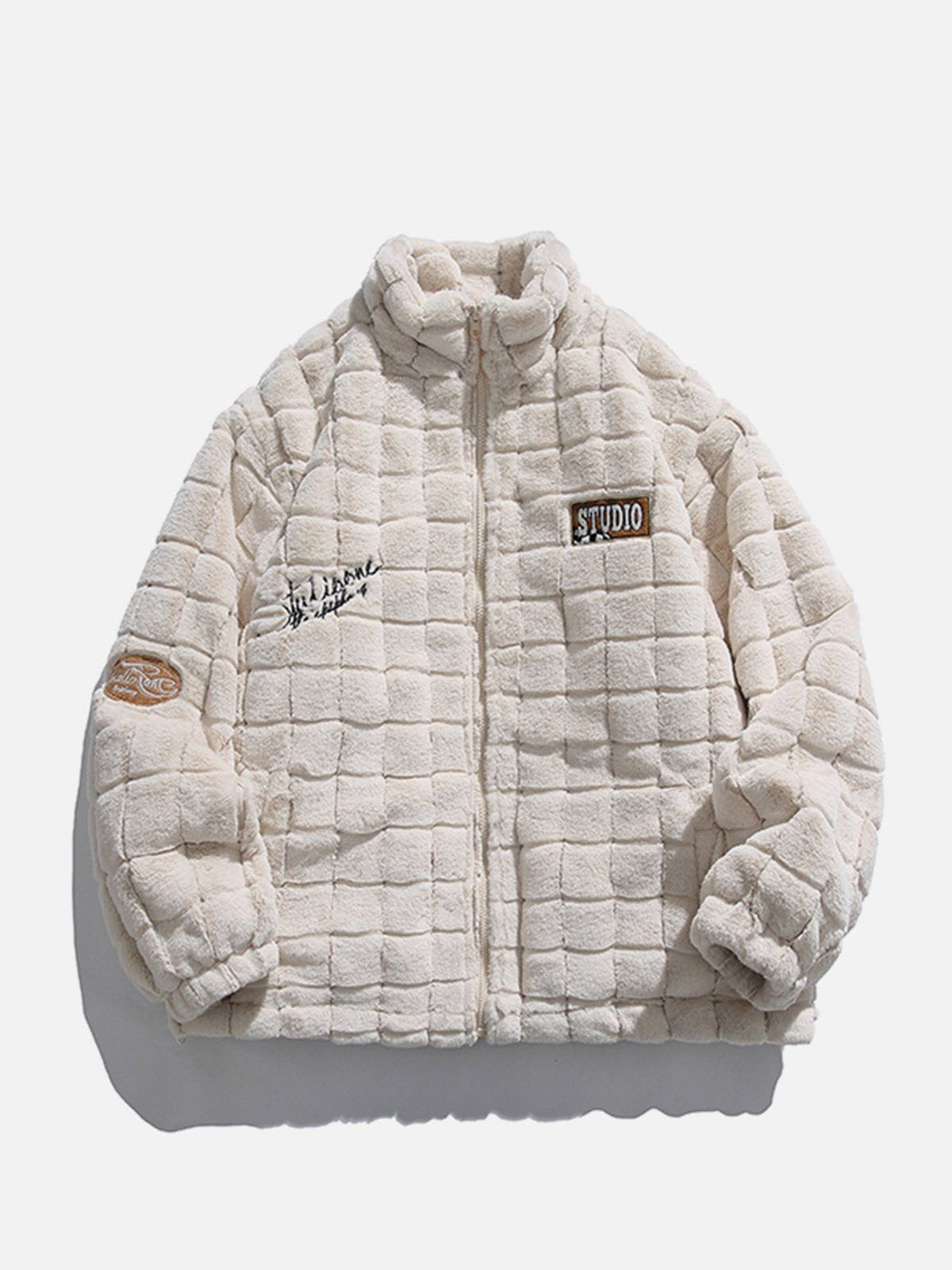 Plaid Embroidery Sherpa Winter Coat