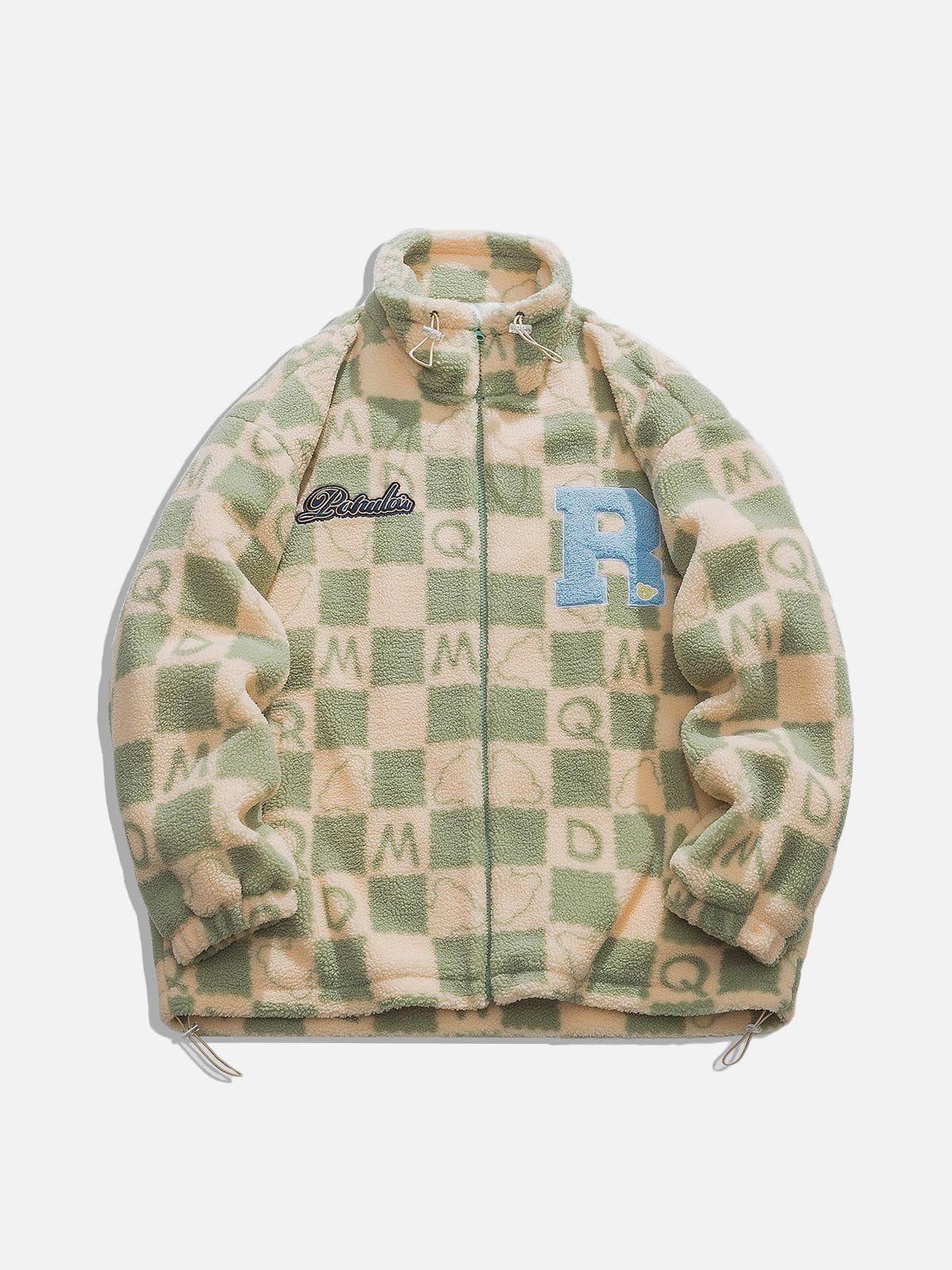 PLAID Letters Sherpa Coat