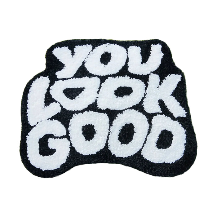 Feel good about yourself with this Positive Affirmation Rug! This small rug is decorated with the phrase "you look good" to remind you of your awesomeness every time you walk in the room. Perfect for your bathroom. entryway. or any other space where you need a little pick-me-up! 🔥