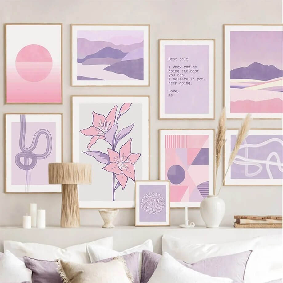 Decorate your room walls with these purple themed minimalist art canvas posters. These aesthetic gallery wall art posters will perfectly fit danish pastel aesthetic or minimalist rooms.