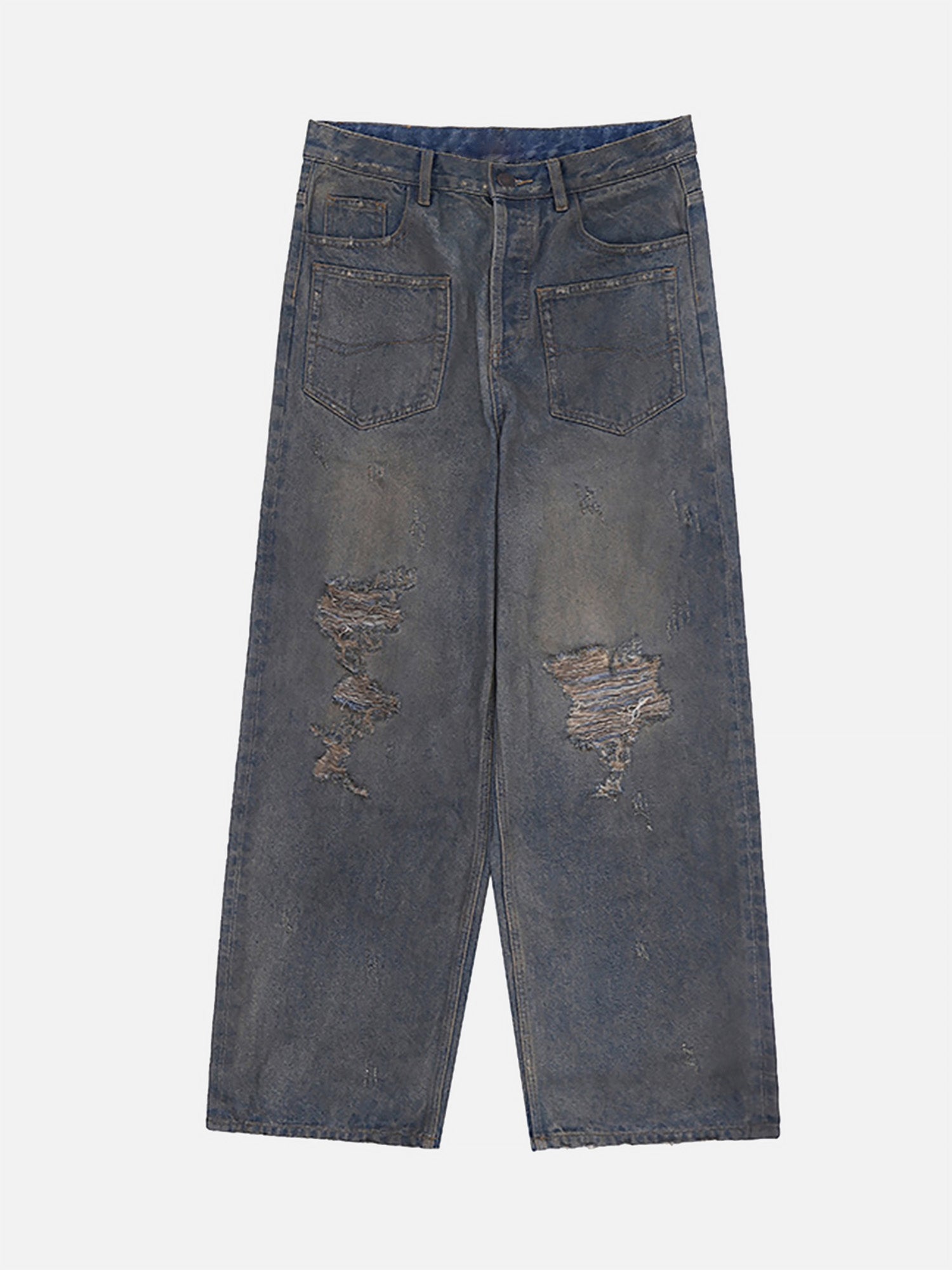 Reverse Pocket Mud Dyed Knife Cut Jeans