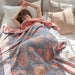 Reversible double side design. which adds reliable strength for use and wash. Adopted with reactive printing and jacquard technology. This quilt is suitable as a daily blanket for summer or bedsheet on your bed. It also can be used as an air conditioning blanket. airplane blanket. bedside towel. sofa blanket. shawl blanket.