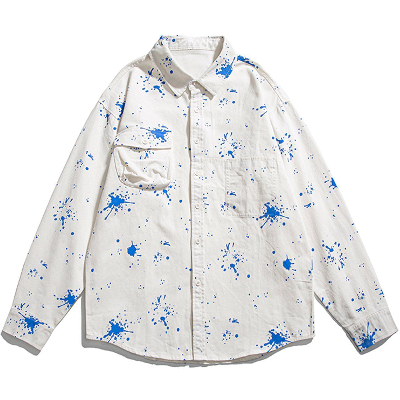 Splash Ink Print Long-sleeved Shirt