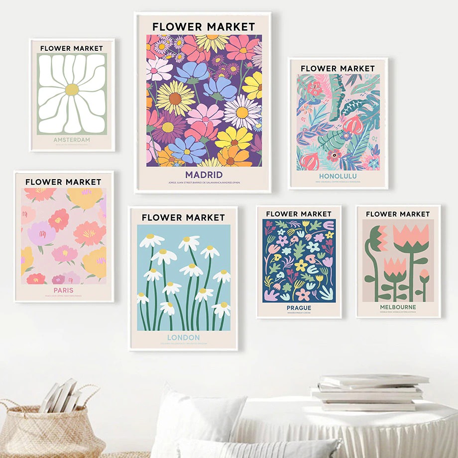 Decorate your room walls with this aesthetic canvas wall art prints. This Vintage Flower Market art Canvas posters perfectly fit almost any pastel or vintage retro styled room and will look great in cottagecore. vintage and many other aesthetic rooms.