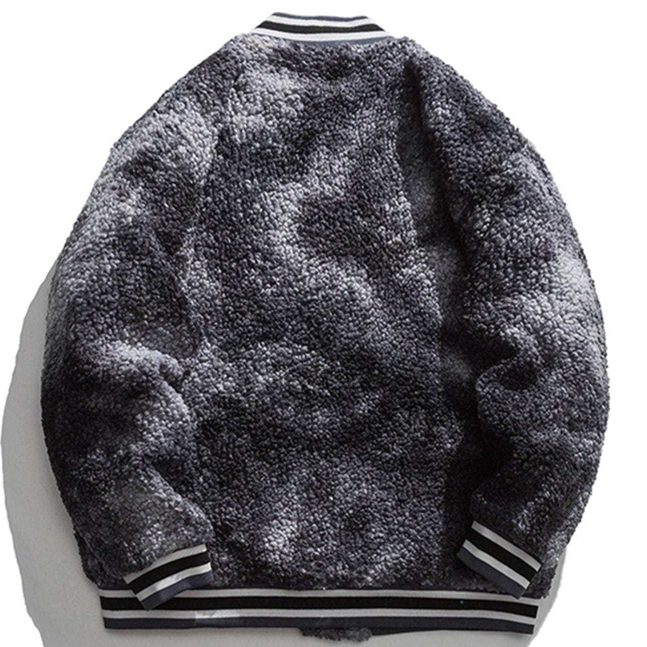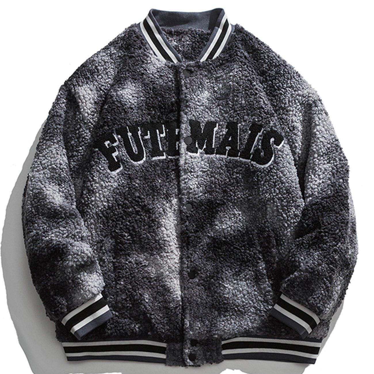 Vintage Tie-dye Letters Embroidery Sherpa Jacket