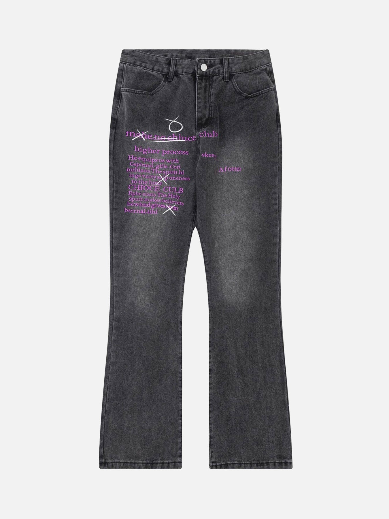 Washed Distressed Letter Embroidered Jeans