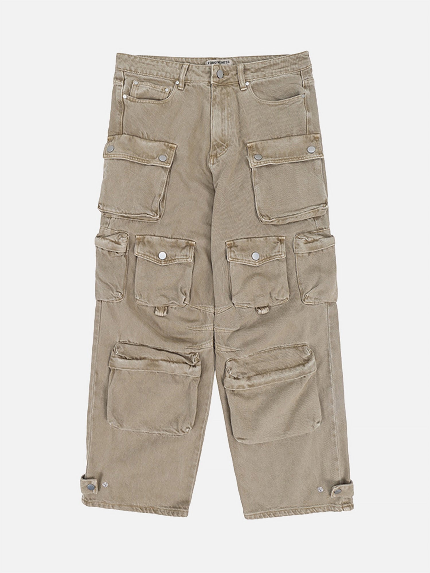 Wasteland Style Washed Distressed Thickened Pocket Cargo Trousers - 1926